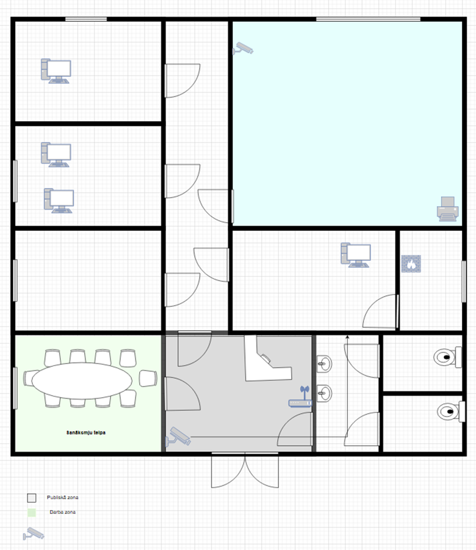 Tēma: Biroja telpu plāns ar drošības zonām un IT izvietojumu